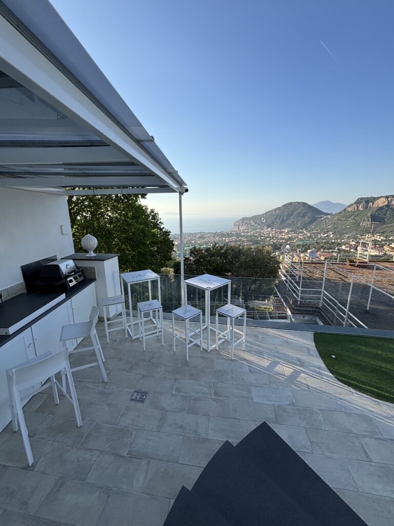 Sa terrasse adjacente surplombe la péninsule de Sorrente et le golfe de Naples.